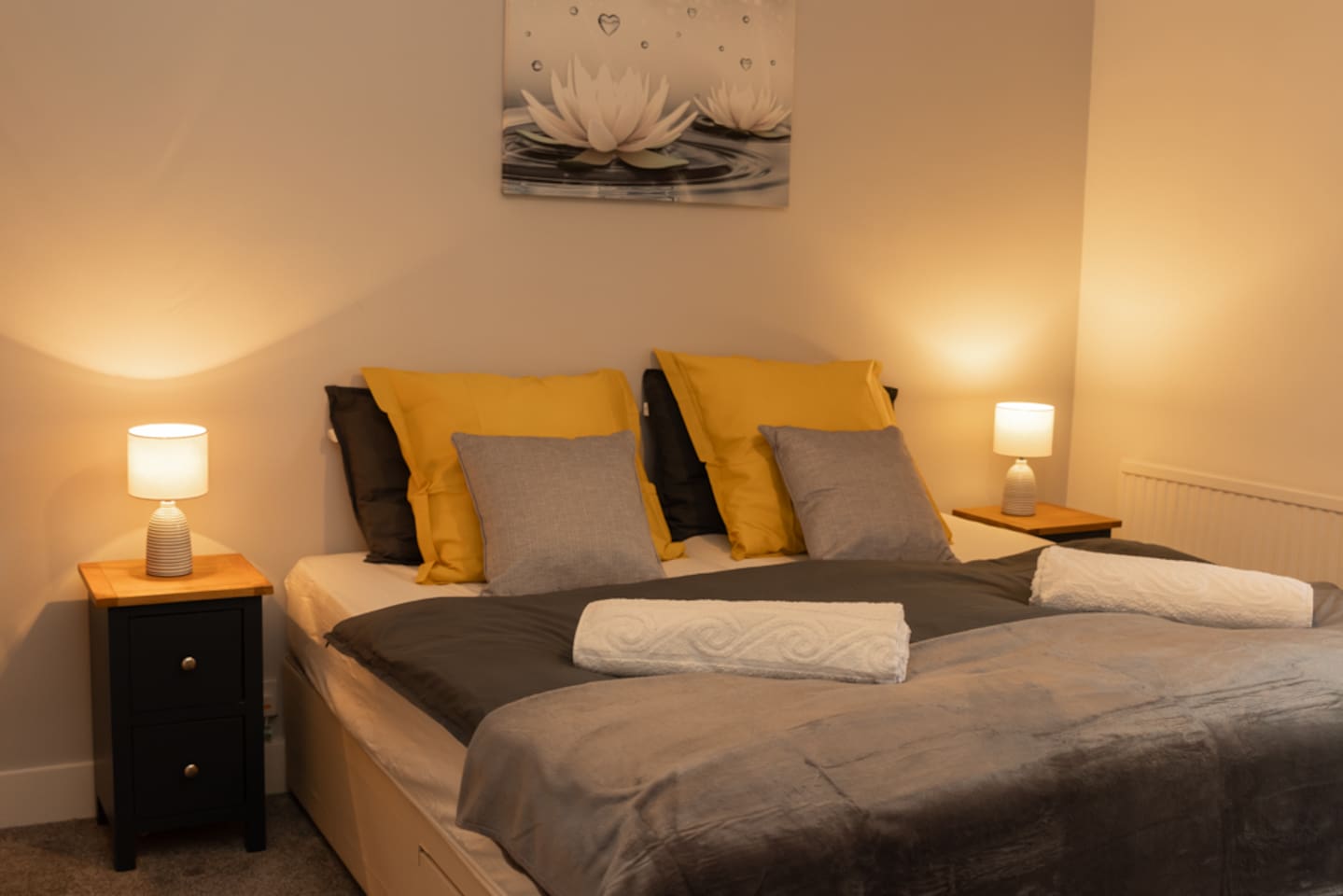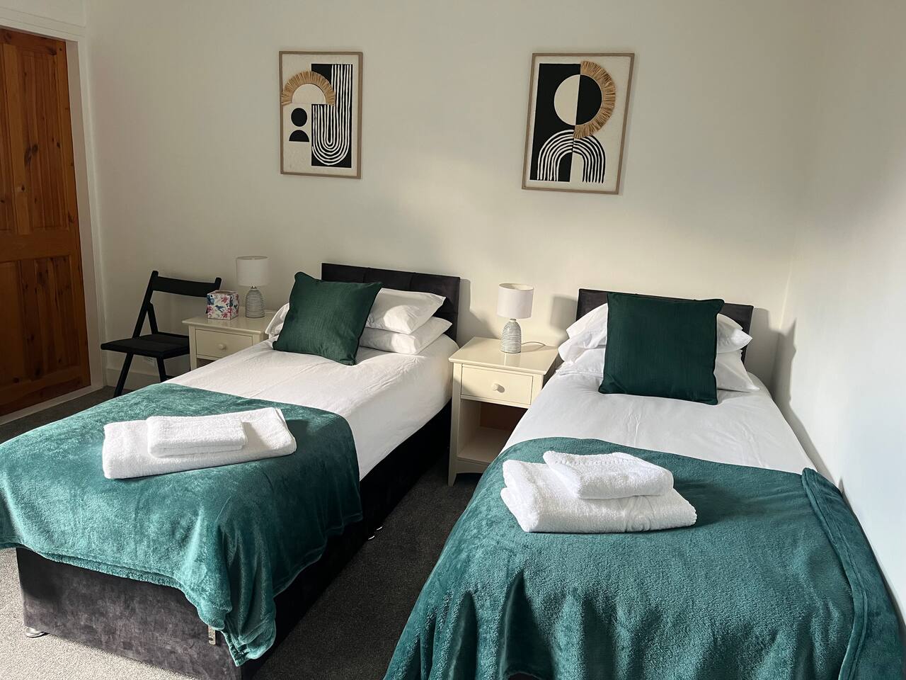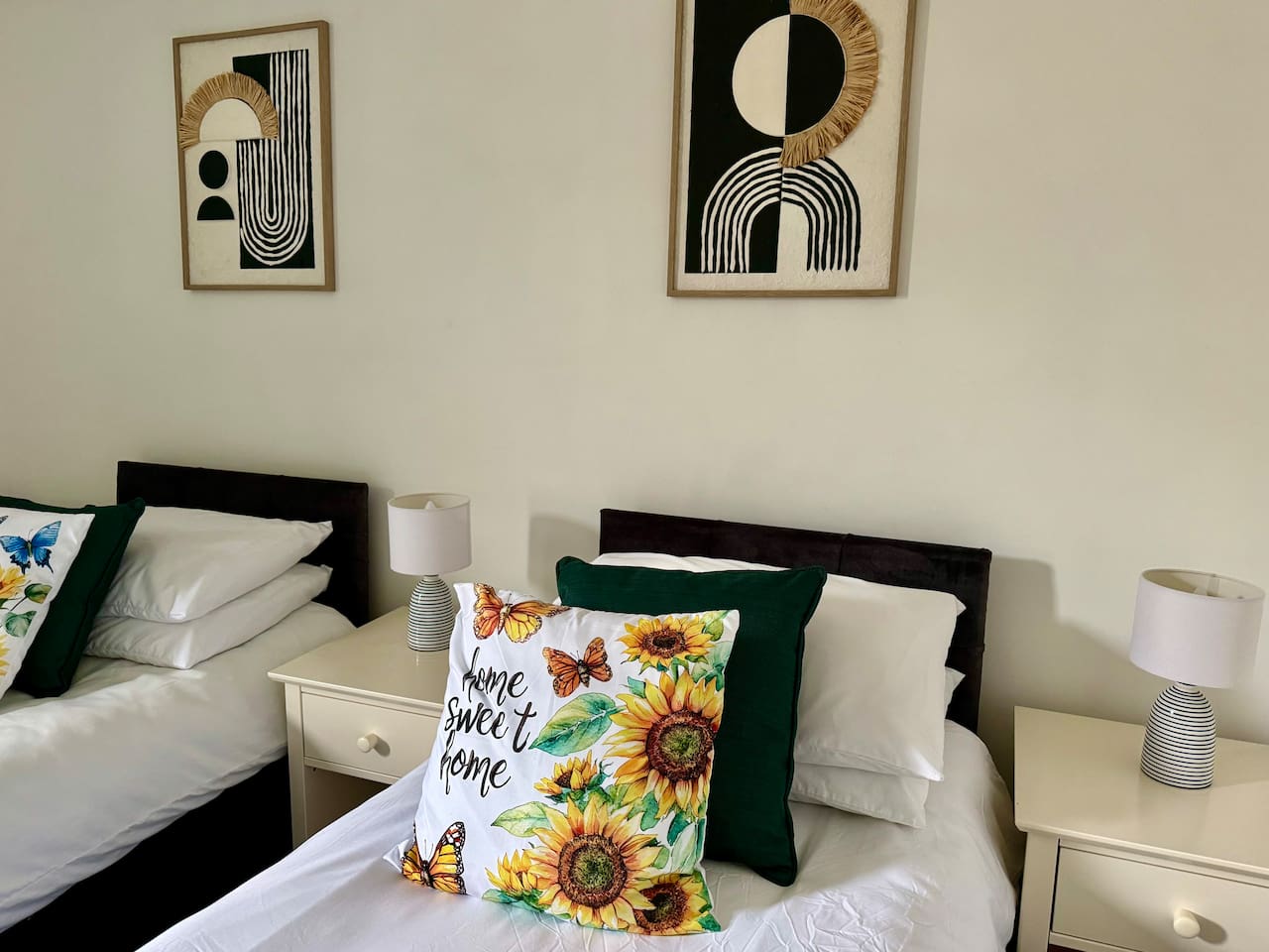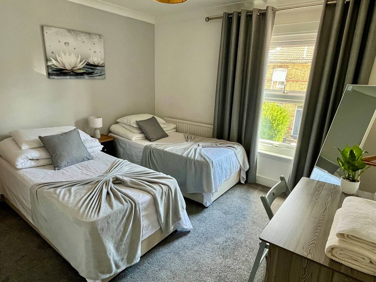 WELCOME to our beautiful home - perfect for both LONG-TERM STAYS and relaxing short getaways. Spacious and stylish 3 bedroom house Up to 7 guests Upstairs there are 3 bedrooms with the third being accessed through the rear bedroom. Bedroom 1: 2 x single beds or 1 x super king zip & link bed Bedroom 2: 2 x single beds Bedroom 3: 2 x single beds or 1 x king zip & link bed Living room: 1 x leather sofa bed, coffee table and 50" flat-screen TV